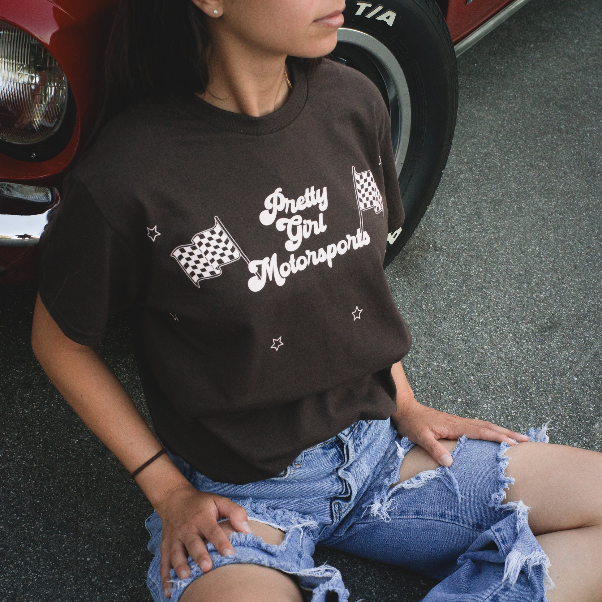 Rock our Pretty Girl Motorsports Logo T-Shirt! Perfect for car shows, cruises, and every day in between <3