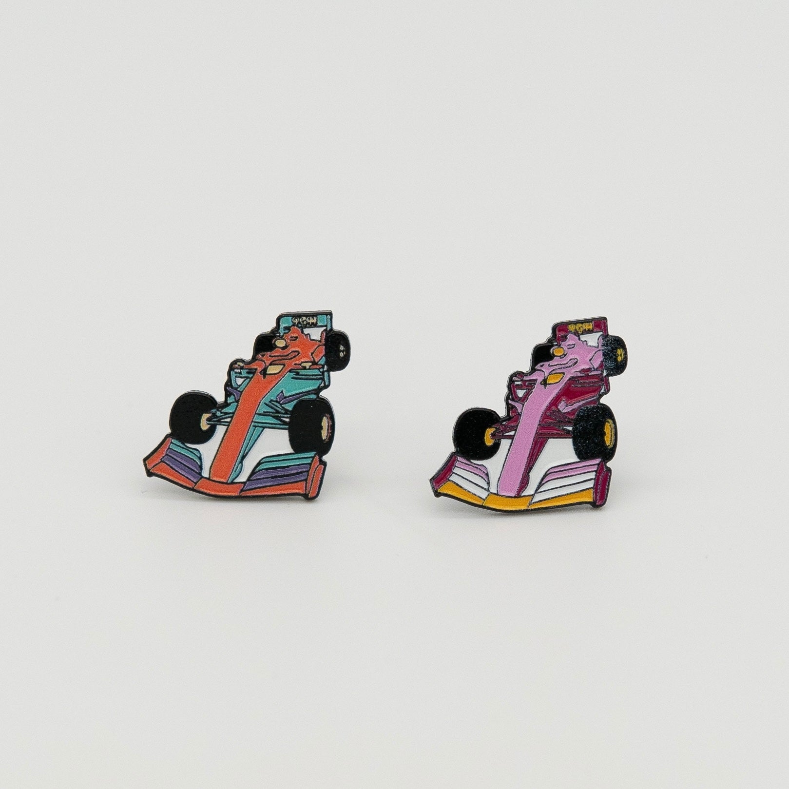 Race car enamel pins! Perfect for backpacks, hats, denim jackets, lanyards, and more!